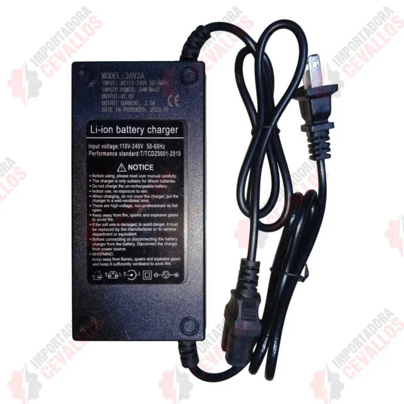 El cargador 36V 2A para batería de litio está diseñado para proporcionar una carga segura, estable y eficiente en patines eléctricos y otros equipos que utilicen baterías compatibles con sistema de 36V.