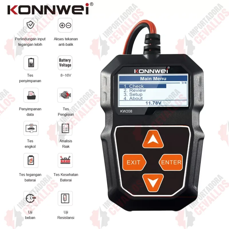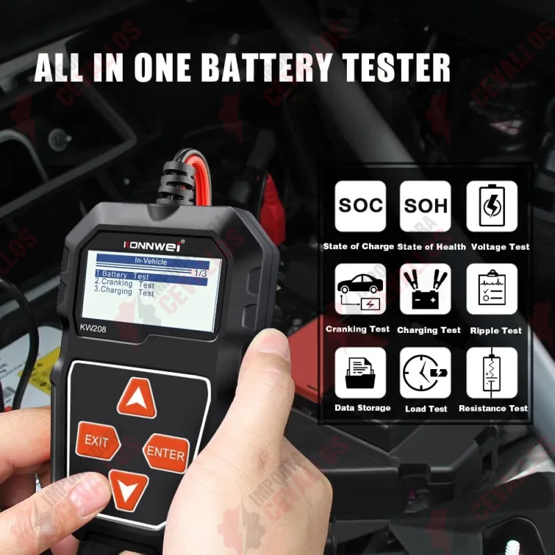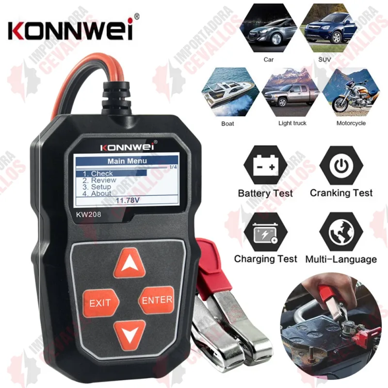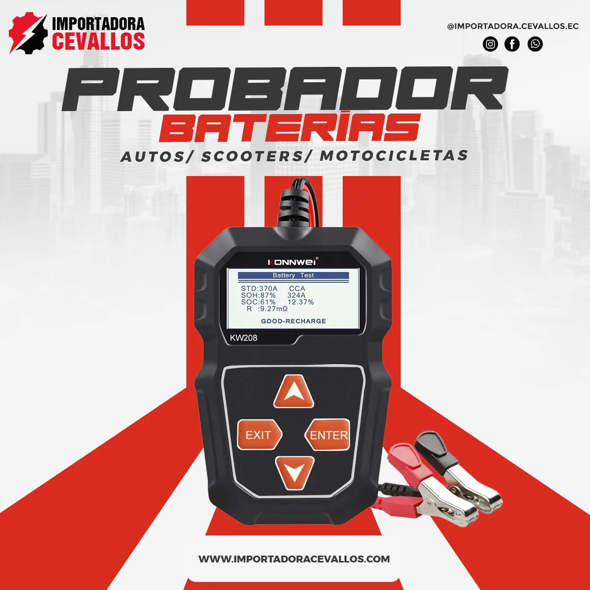 🔧 Probador digital de baterías KONNWEI KW208, diseñado para analizar de forma rápida el estado de baterías de 12V en autos, Scooter eléctricos y  motocicletas y otros vehículos.